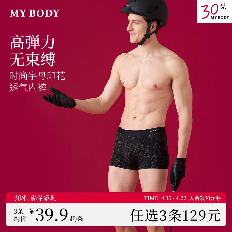 猫人男士内裤本命年红色无痕冰丝抗菌平角男结婚夏季透气四角短裤