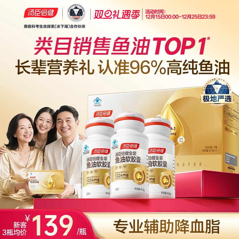 汤臣倍健旗舰96金装深海鱼油软胶囊高纯度omega3中老年降血脂礼盒