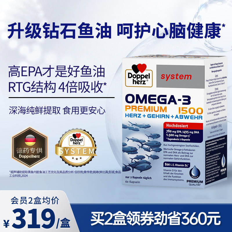 爆款德国双心omega3鱼油高纯度深海鱼油软胶囊60粒高浓度鱼油成人