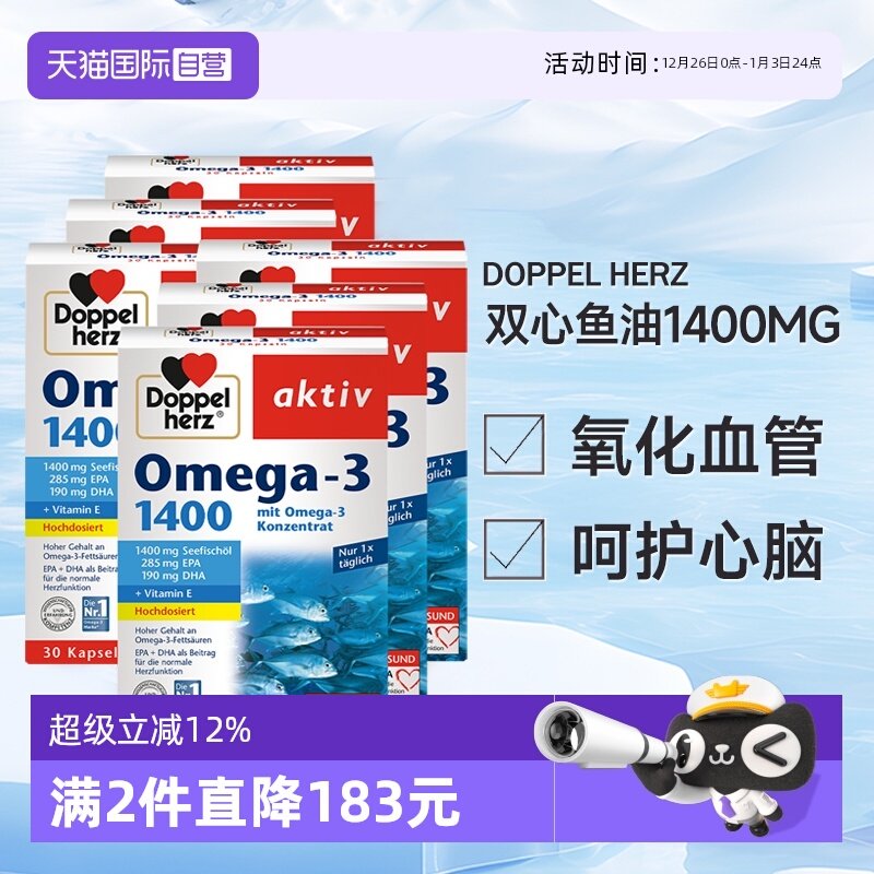 【自营】德国进口双心深海鱼油软胶囊omega3肝男官方旗舰店正品*6