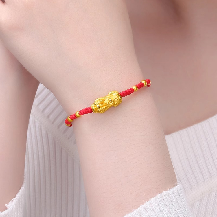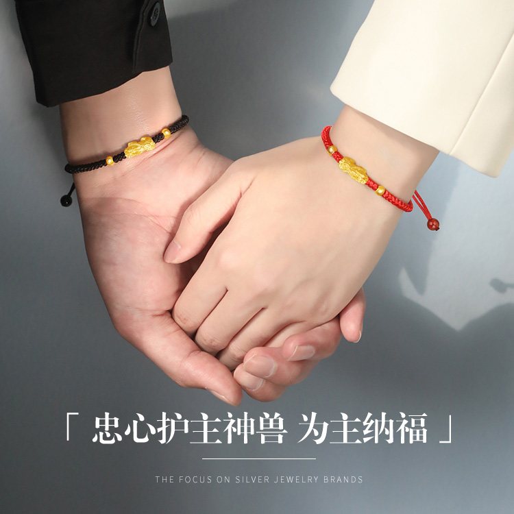 黄金貔貅情侣手链一对3D硬金转运珠红绳手串本命年男女款情人礼物