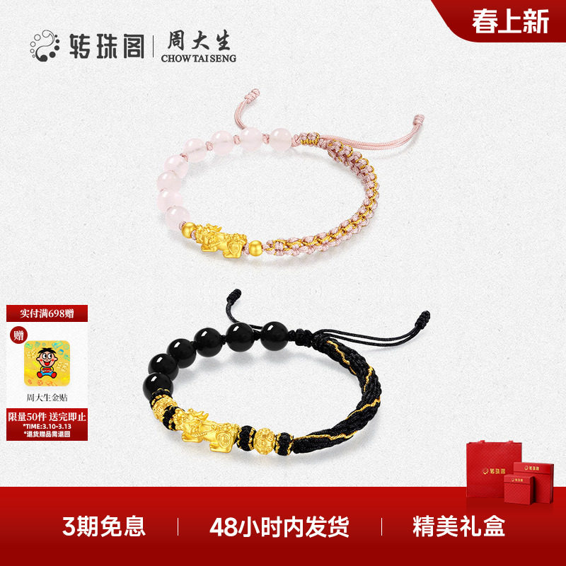 周大生转珠阁黄金貔貅手链男女足金硬金情侣手绳送女男友生日礼物