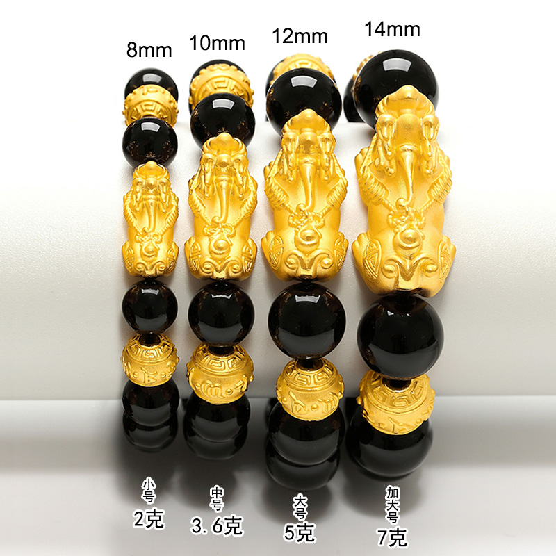 越南沙金仿真3d硬黄金貔貅手链串男女不掉色黑曜石招财生日送礼