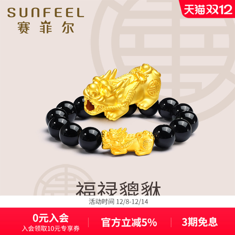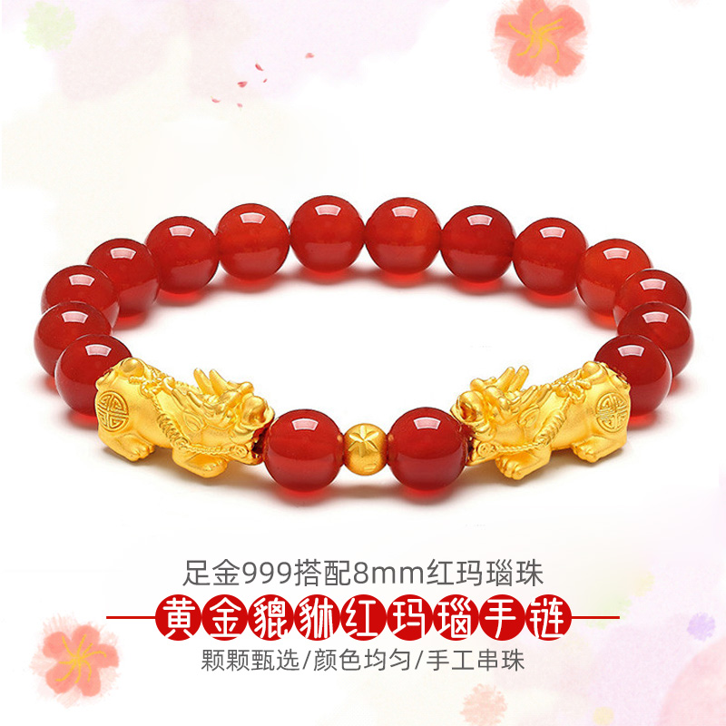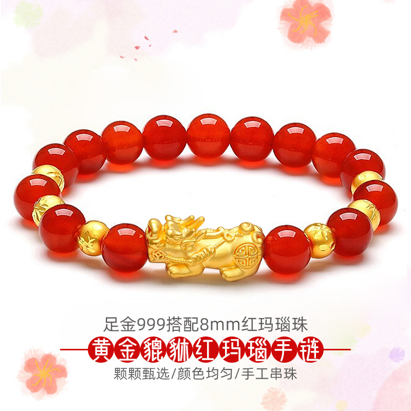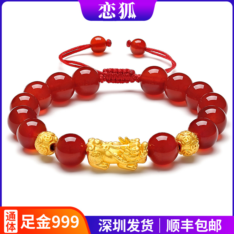 千年珠宝黄金貔貅手链女足金999皮丘转运珠玛瑙手串六字箴言手链