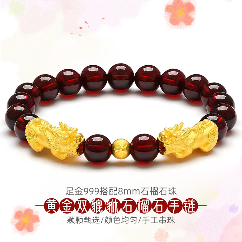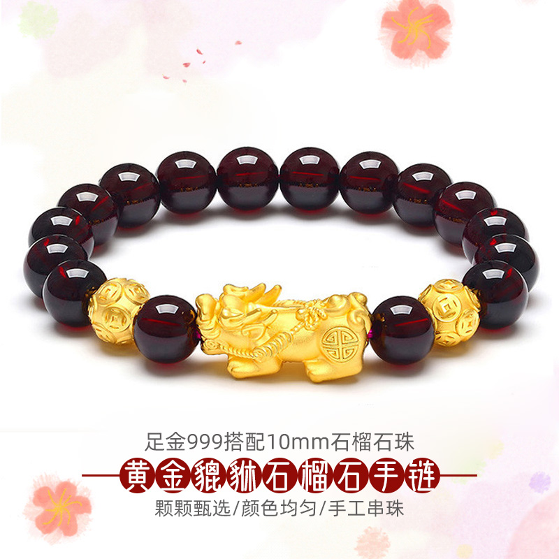 黄金貔貅手链女 999足金貔貅转运珠招财貔貅石榴石转运珠手串