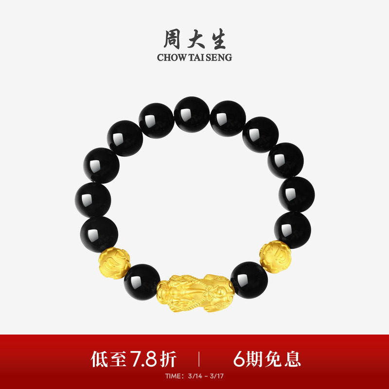 周大生黄金貔貅手链男女足金硬金财源金珠情侣手绳送男生生日礼物