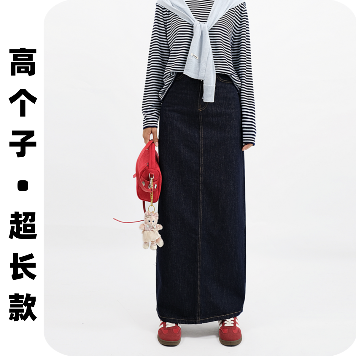 加长牛仔裙女高个子美式复古辣妹宽松垂感百搭半身裙开叉长裙秋冬