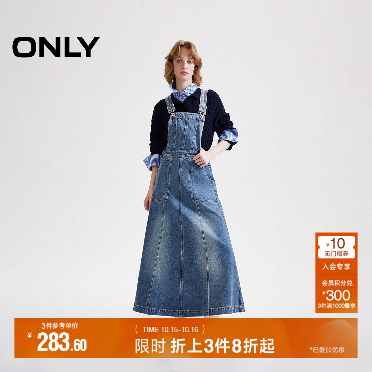 ONLY2025夏季新款复古做旧磨白可调节背带长裙牛仔裙连衣裙女