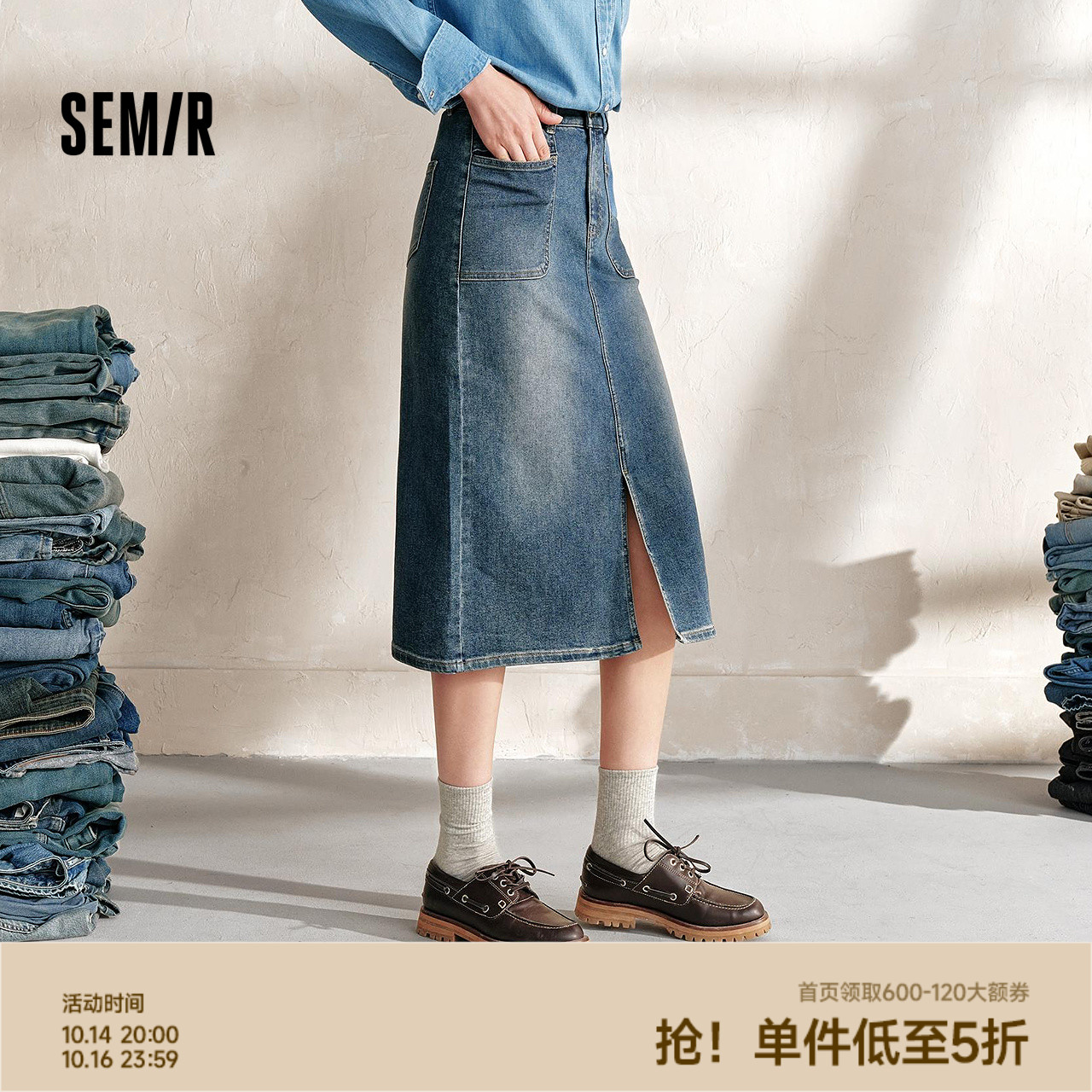 森柔牛仔|森马牛仔半身裙女开叉长裙显腿长秋盐系复古直筒裙潮酷