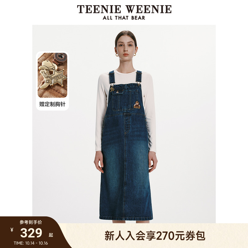 TeenieWeenie小熊秋季复古时尚摩登牛仔裙背带裙美拉德连衣裙女装