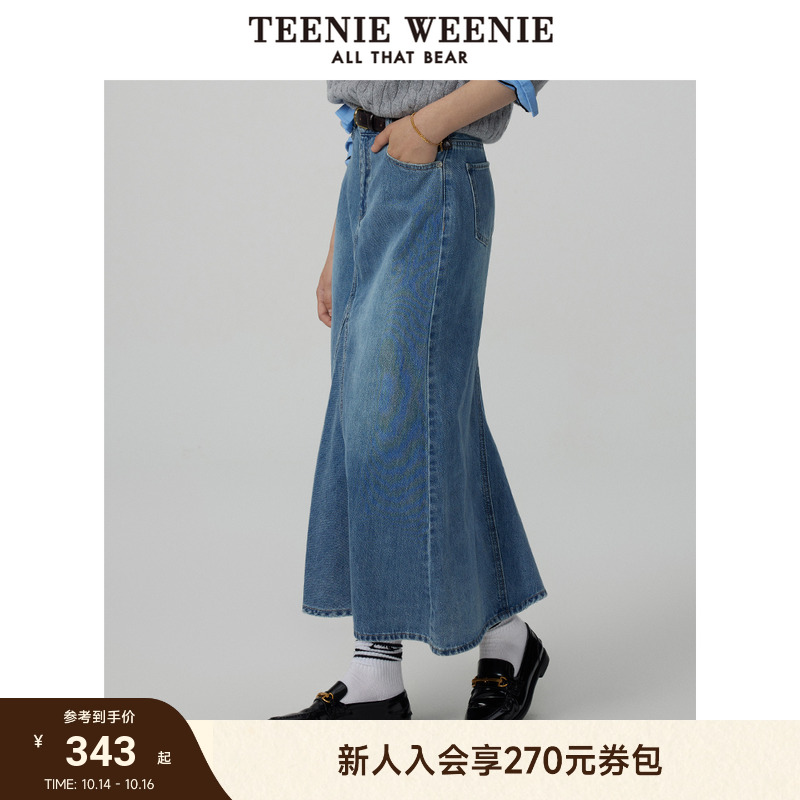 TeenieWeenie小熊秋季简约时髦中长鱼尾裙牛仔裙裙时髦气质通勤女