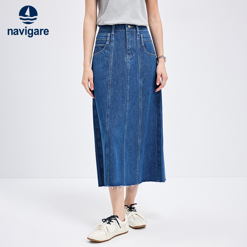 Navigare意大利小帆船百搭牛仔裙女25春夏新款中长款纯棉半身裙女