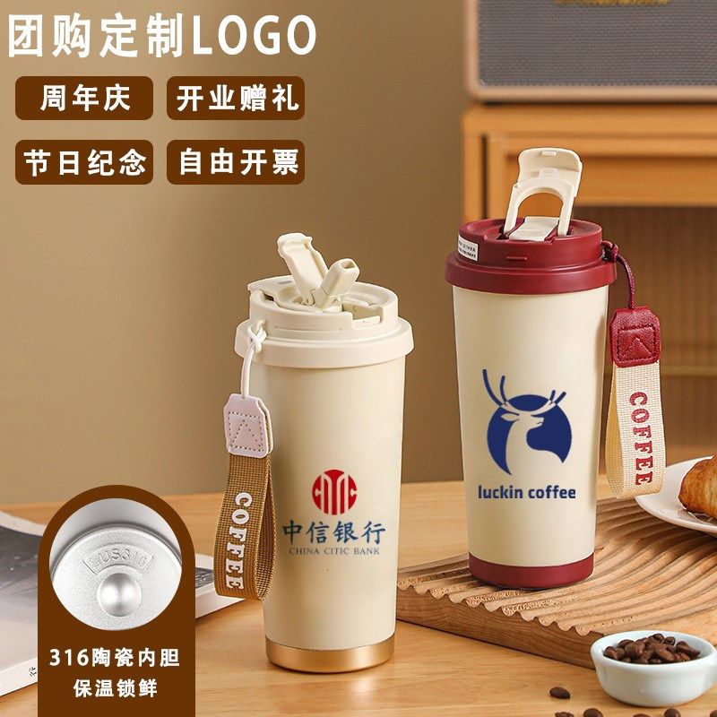双饮咖啡杯316不锈钢保温杯刻字随行水杯高颜值吸管杯子订.制LOGO