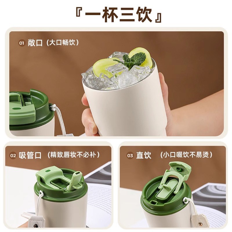 双饮咖啡杯316不锈钢保温杯刻字随行水杯高颜值吸管杯子定制logo