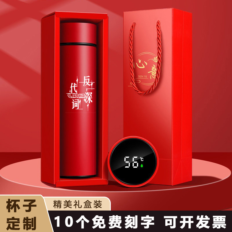 316不锈钢保温杯智能显温男女高颜值水杯上学办公印图案刻字杯子