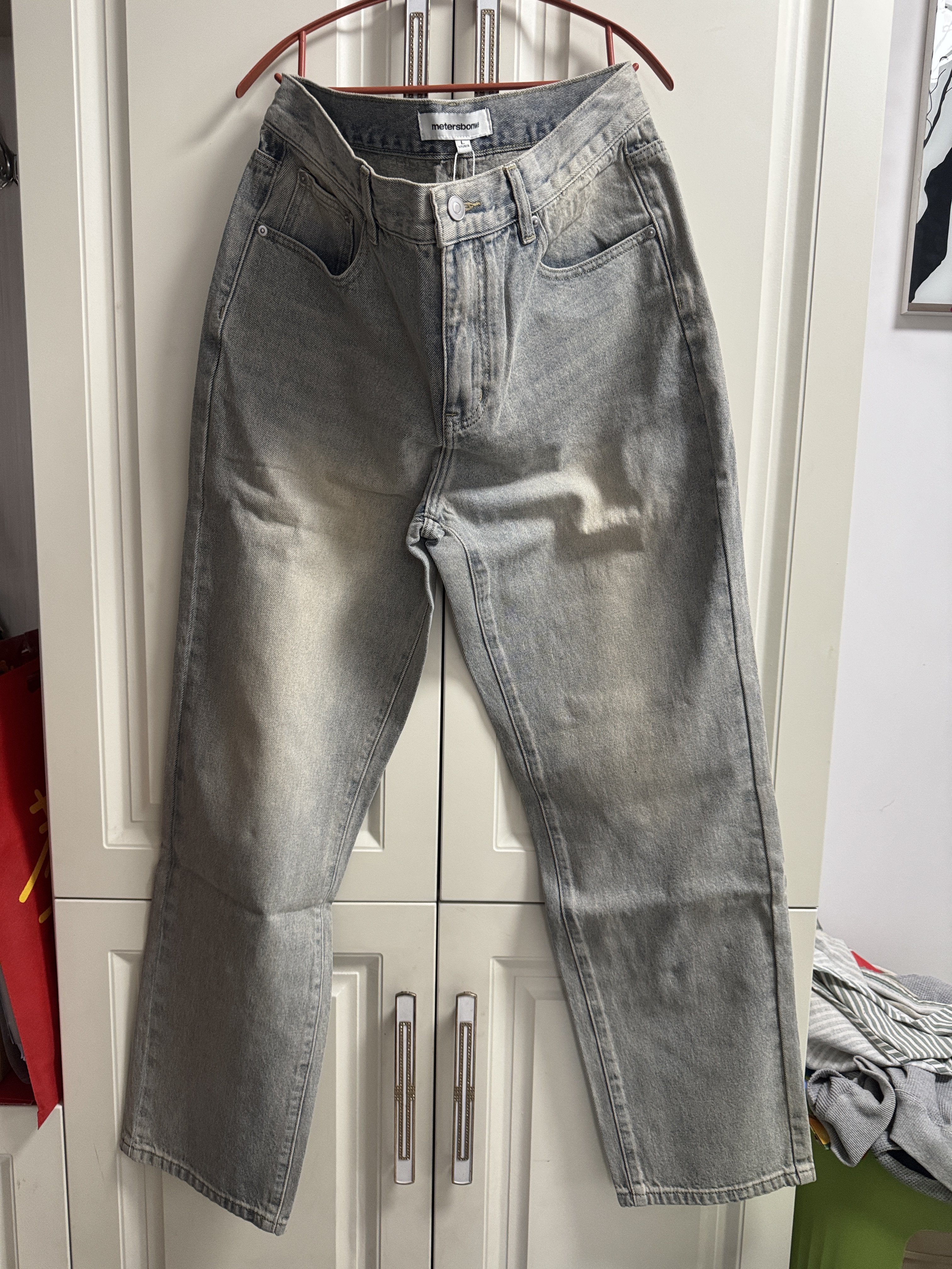 国货美特斯男牛仔裤复古水洗加绒保暖直筒裤子无弹侧条加厚休闲裤