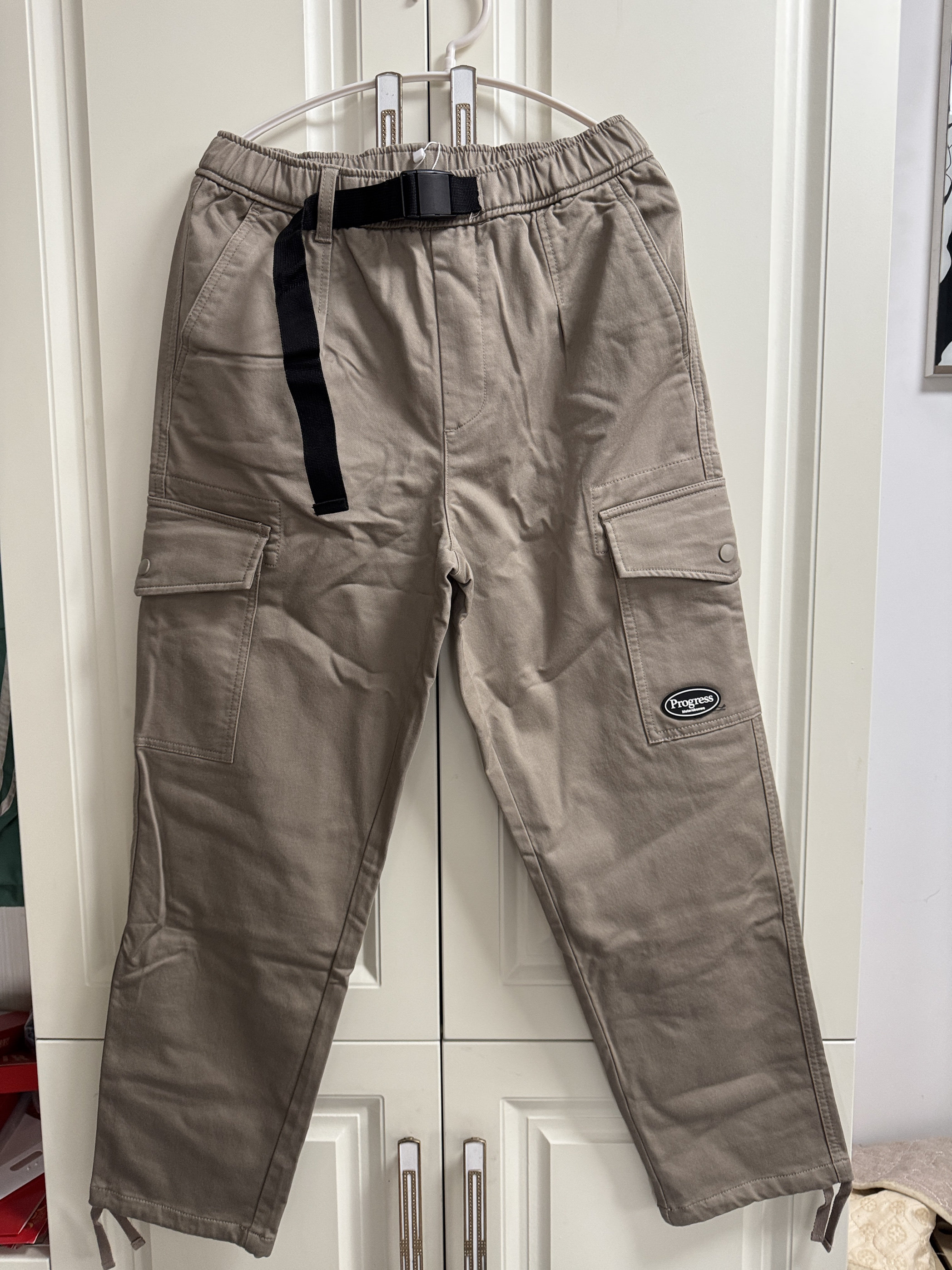 美特斯邦威男休闲裤春秋腰带扣松紧腰弹力束脚慢跑裤多袋工装长裤