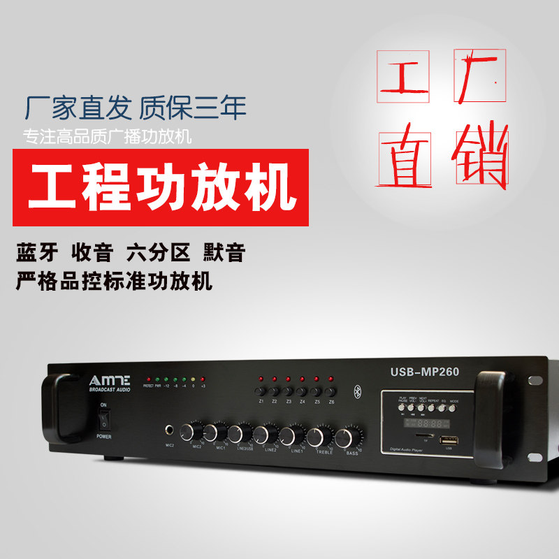 280W定压功放 带USB 合并功放 带六分区/多路 公共广播功放机