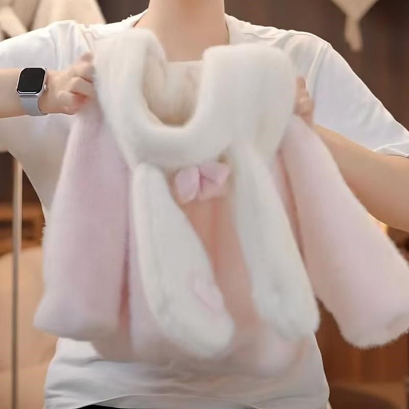 宝宝皮草外套2024新款儿童甜美兔耳朵连帽加绒毛毛衣秋冬加厚保暖