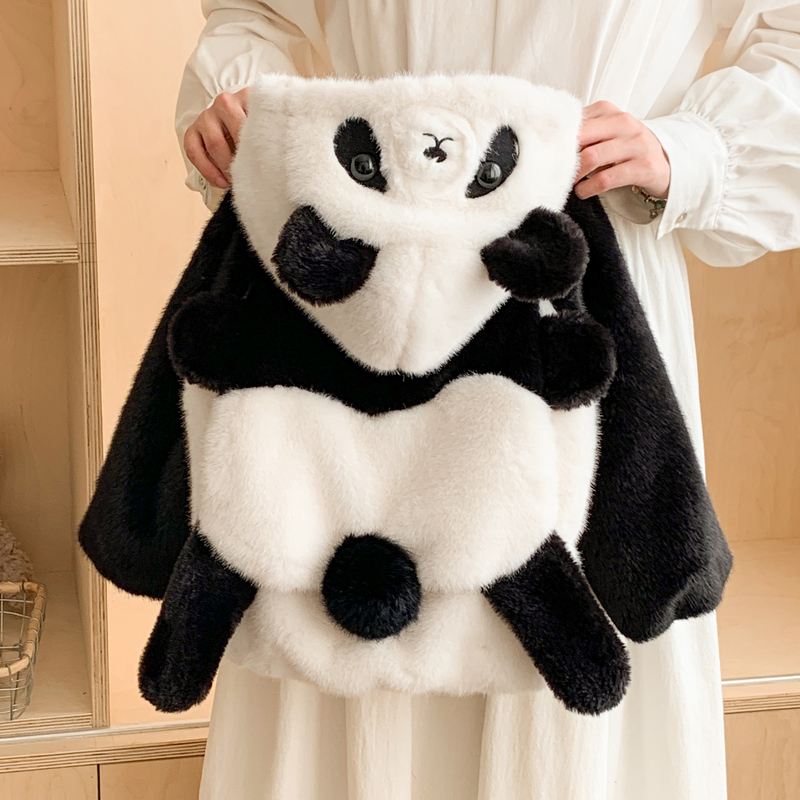 熊猫宝宝皮草外套2025新款可爱卡通儿童连帽加厚棉服加绒保暖冬装