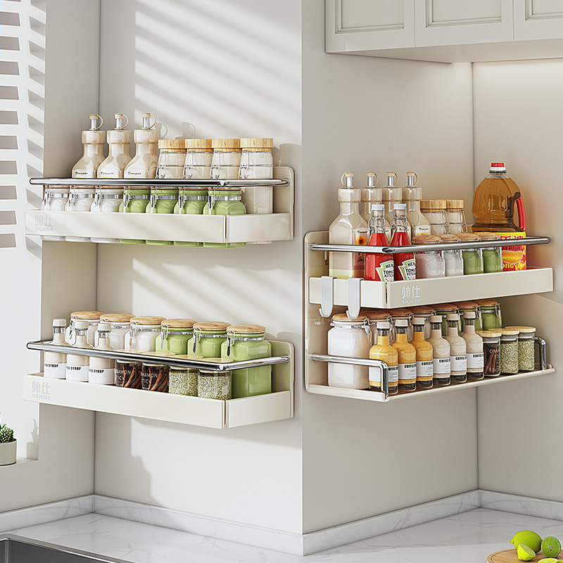 帅仕厨房调料置物架壁挂墙上免打孔多功能不锈钢调味品罐收纳架子