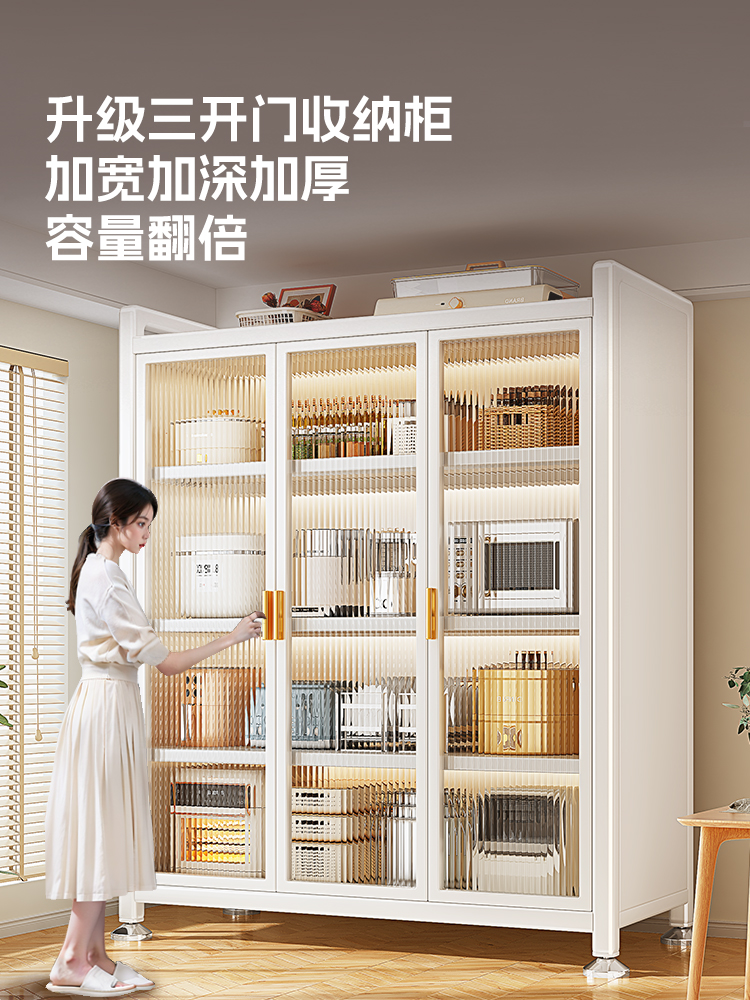 帅仕厨房置物架落地多层家用收纳柜子微波炉防尘多功能整体橱柜收