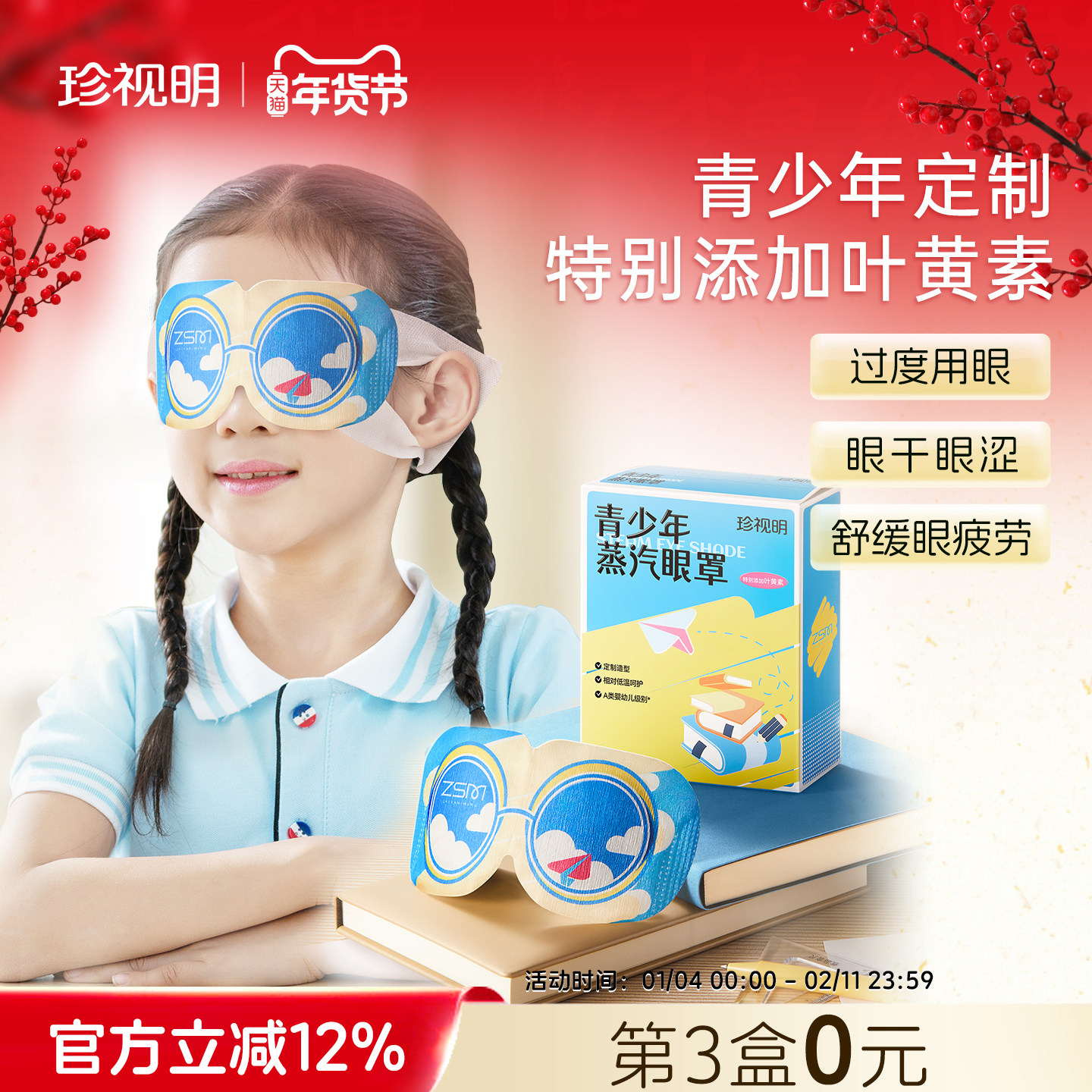 珍视明青少年儿童热敷蒸汽眼罩叶黄素发热眼罩舒缓中小学生眼疲劳
