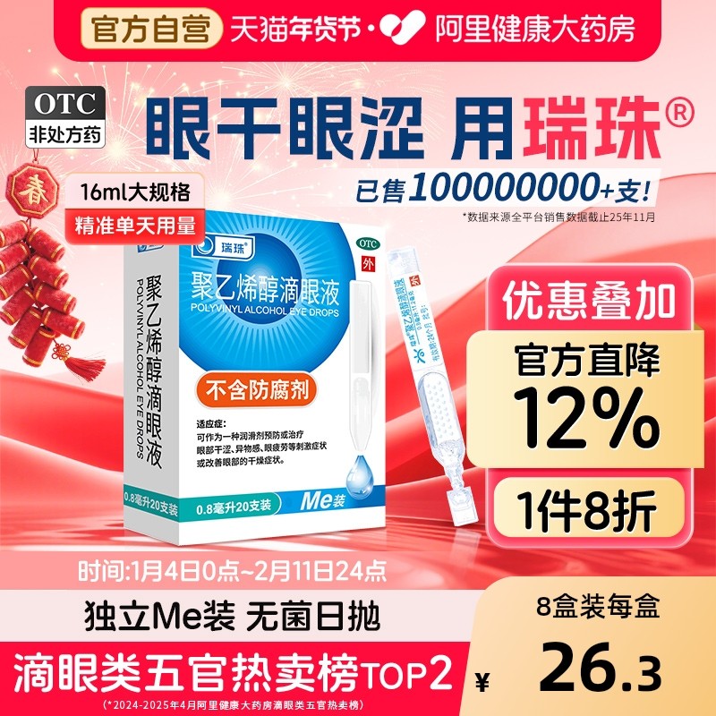 瑞珠聚乙烯醇滴眼液20支人工泪液缓解眼干眼症眼疲劳近视眼眼药水