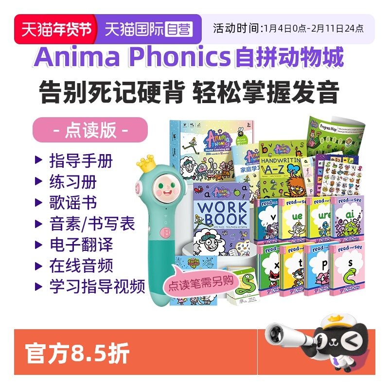【自营】Anima Phonics自拼动物城套装英文26个字母发音 英国学校拼读教材 儿童英语音标教具 Phonics自然拼读启蒙发音学习神器