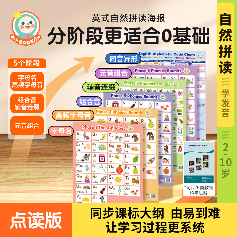小book点自然拼读发音海报挂图学英语phonics自然拼读发音规则表