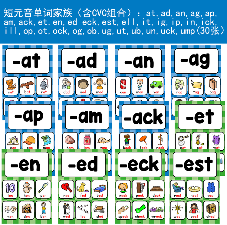 phonics自然拼读单词卡片cvc小学英语字母文教材教具sightwords