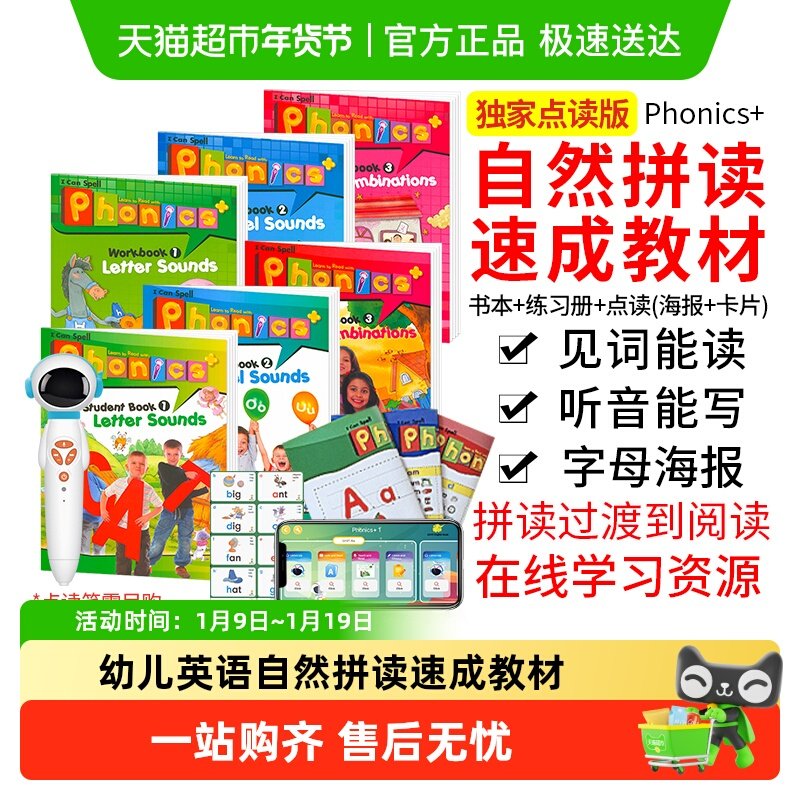 【进口直营】原版进口 5-12岁幼少儿英语 phonics自然拼读教材 点读版EFL PHONICS 学生套装( 书+册+绘本+挂图)启蒙英语