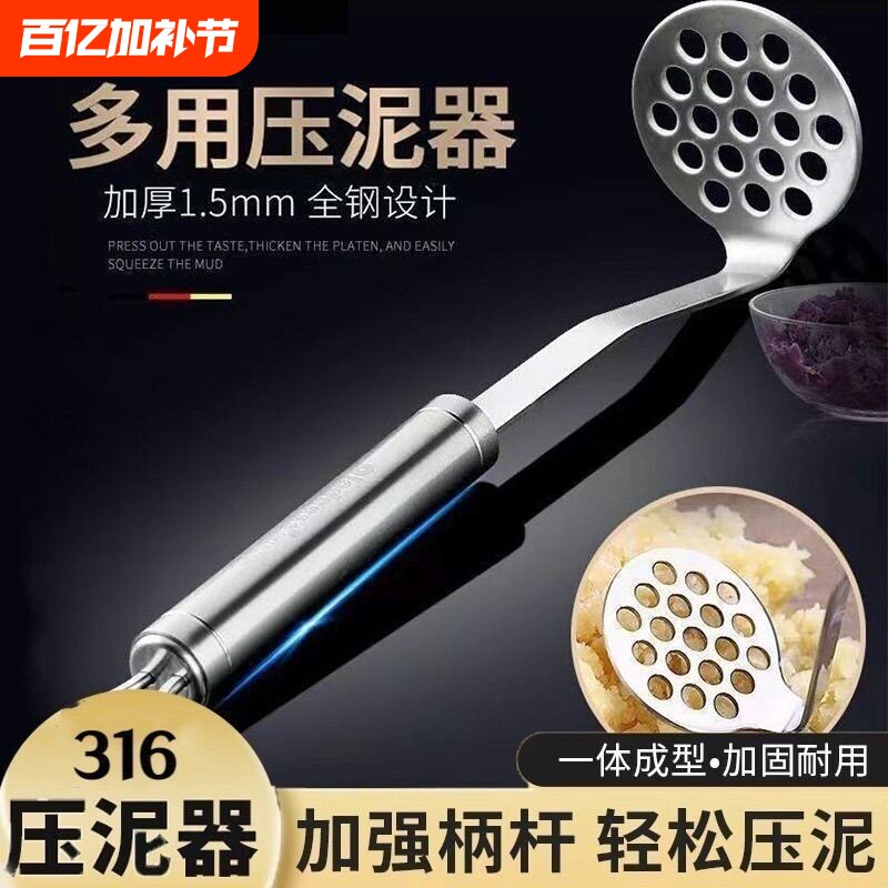 316不锈钢土豆压泥器按压山药泥神器婴儿辅食捣泥器碾压捣碎工具