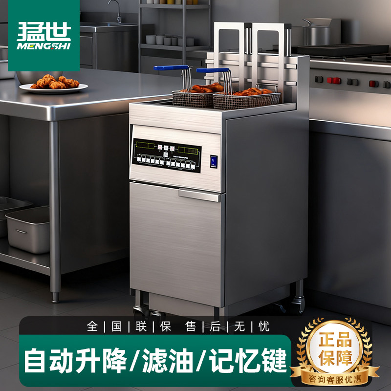 猛世立式电炸炉商用全自动升降款炸鸡炸串大容量单缸双槽电油炸锅