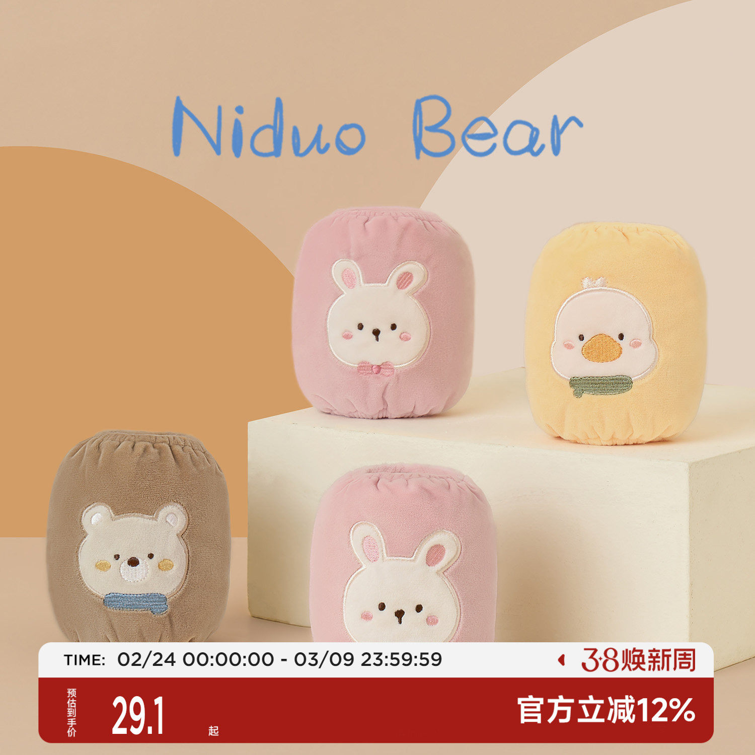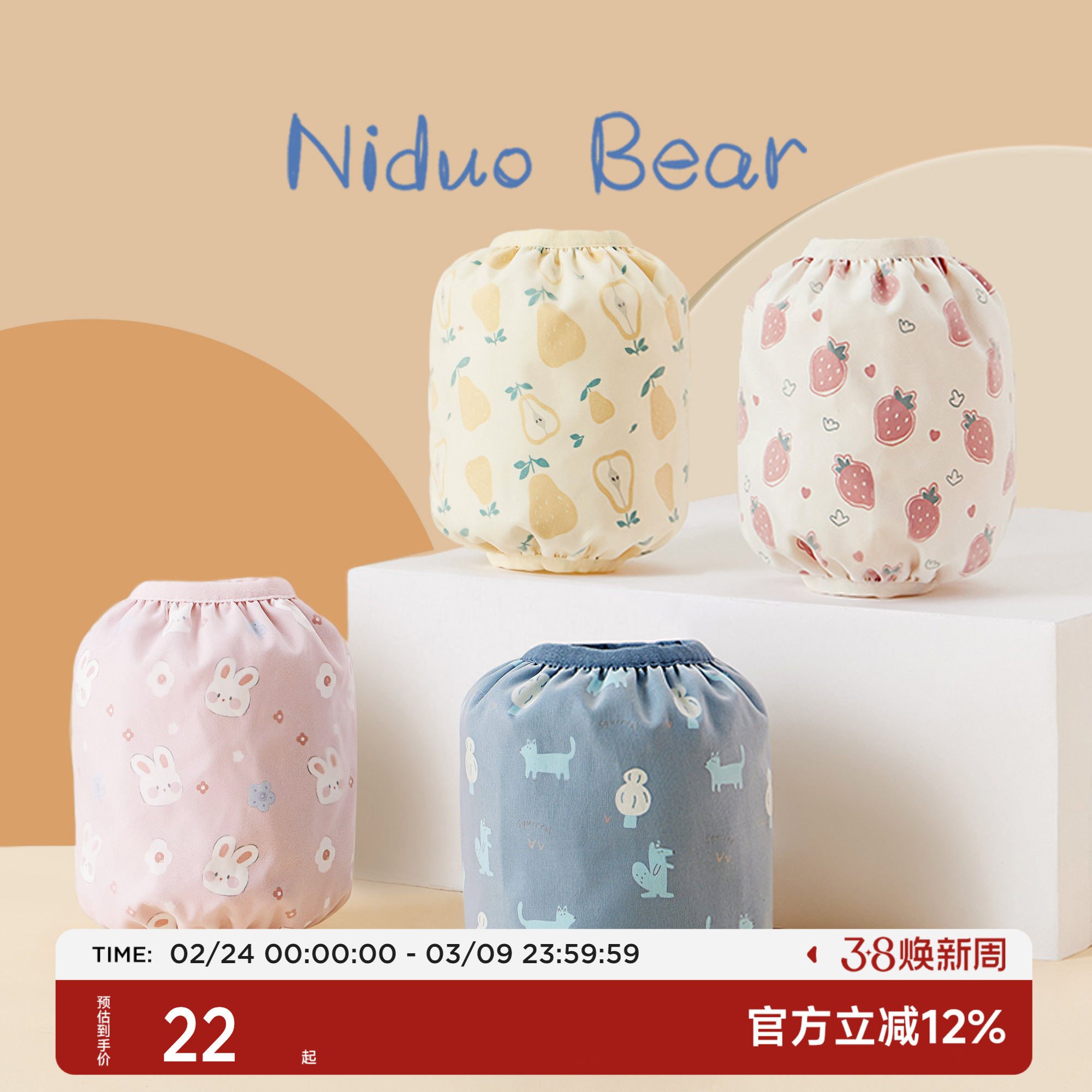 尼多熊儿童袖套秋冬宝宝袖套防水防污婴儿护袖防脏男童女童套袖冬