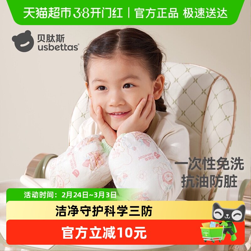 贝肽斯儿童一次性袖套婴儿防水防污防油宝宝男女童袖套春秋加大款