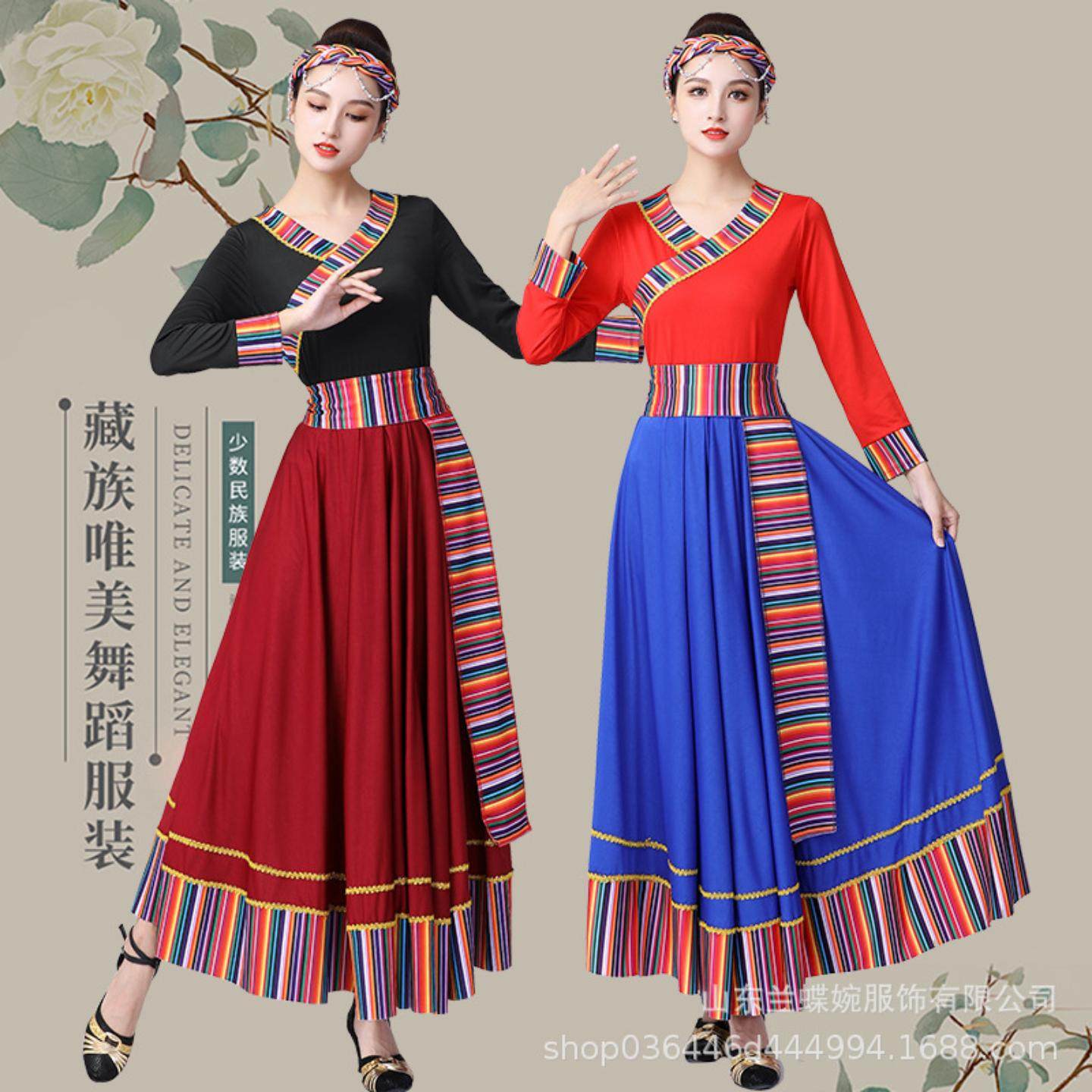 2021新款藏族舞蹈演出服装女成人民族风长裙广场舞服装分体三件套
