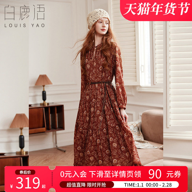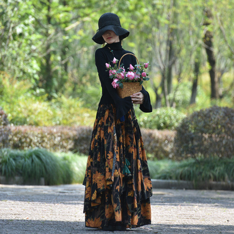 【霓虹】素心自制民族风大摆裙百搭女春秋印花 a型长裙显瘦半身裙