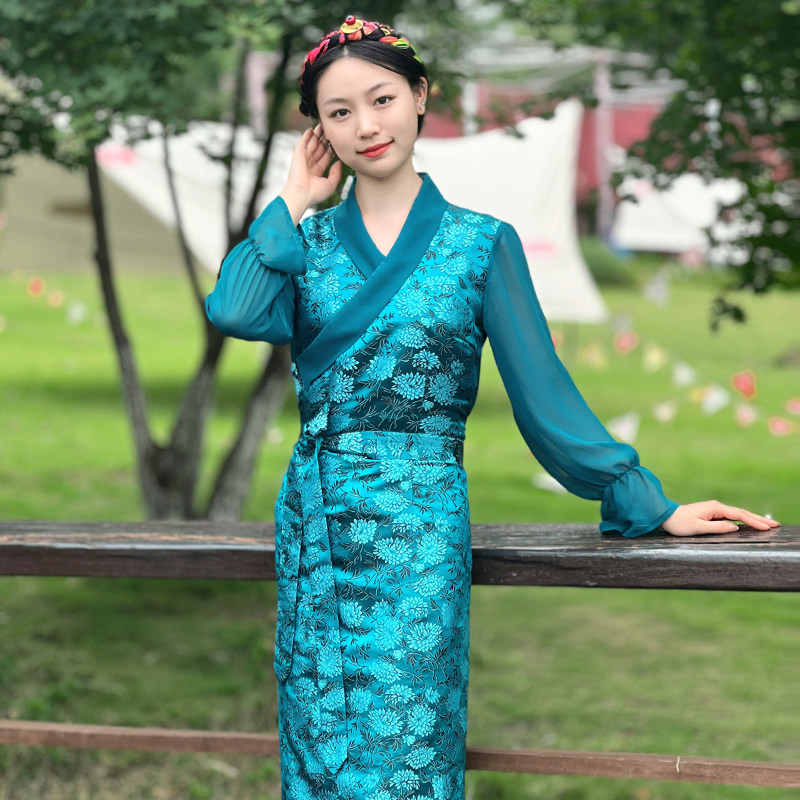 纤沫藏族服装女新款藏装拉萨服夏季拼色博拉西藏服裹裙民族风长裙