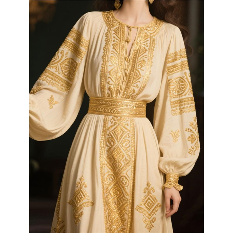 美伦民族风长裙2025夏立领重工刺绣宽松优雅浪漫气质连衣裙女