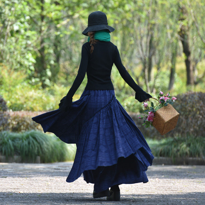 【绮罗香】素心自制民族风长裙扎染裙春秋复古拼接大摆中长半身裙