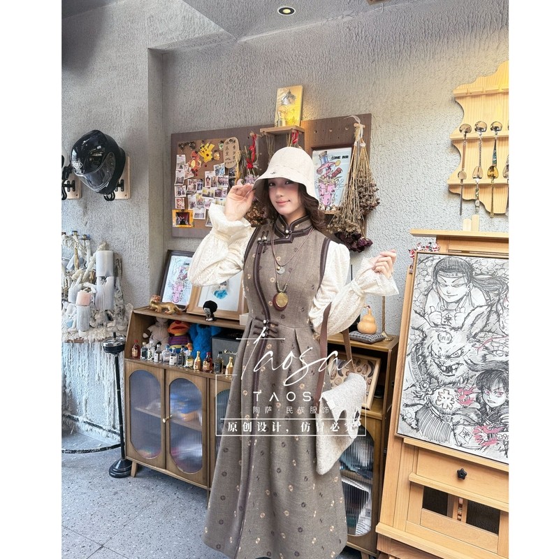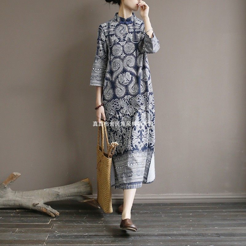 【梧桐】素心自制民族风长裙女春秋复古文艺范印花棉麻大摆半身裙