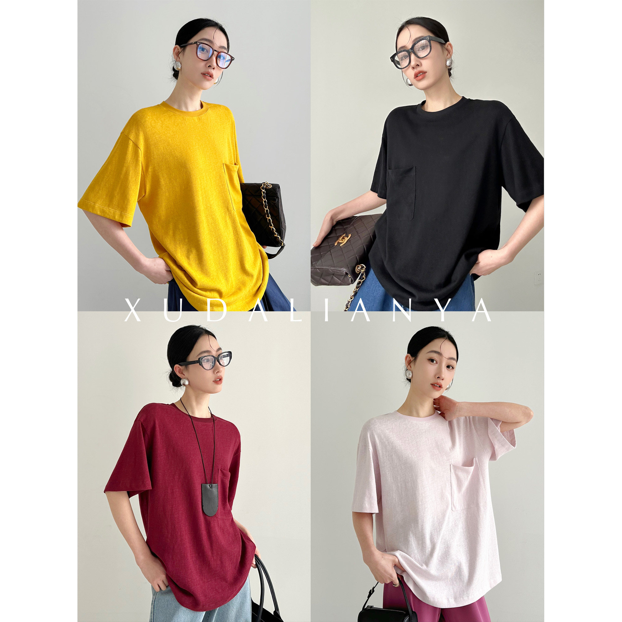 徐大脸吖定制 7色!松弛感口袋体恤上衣春夏宽松圆领透气短袖t恤女