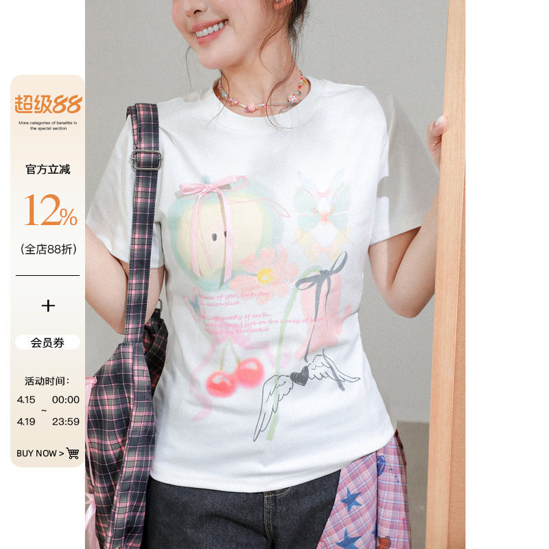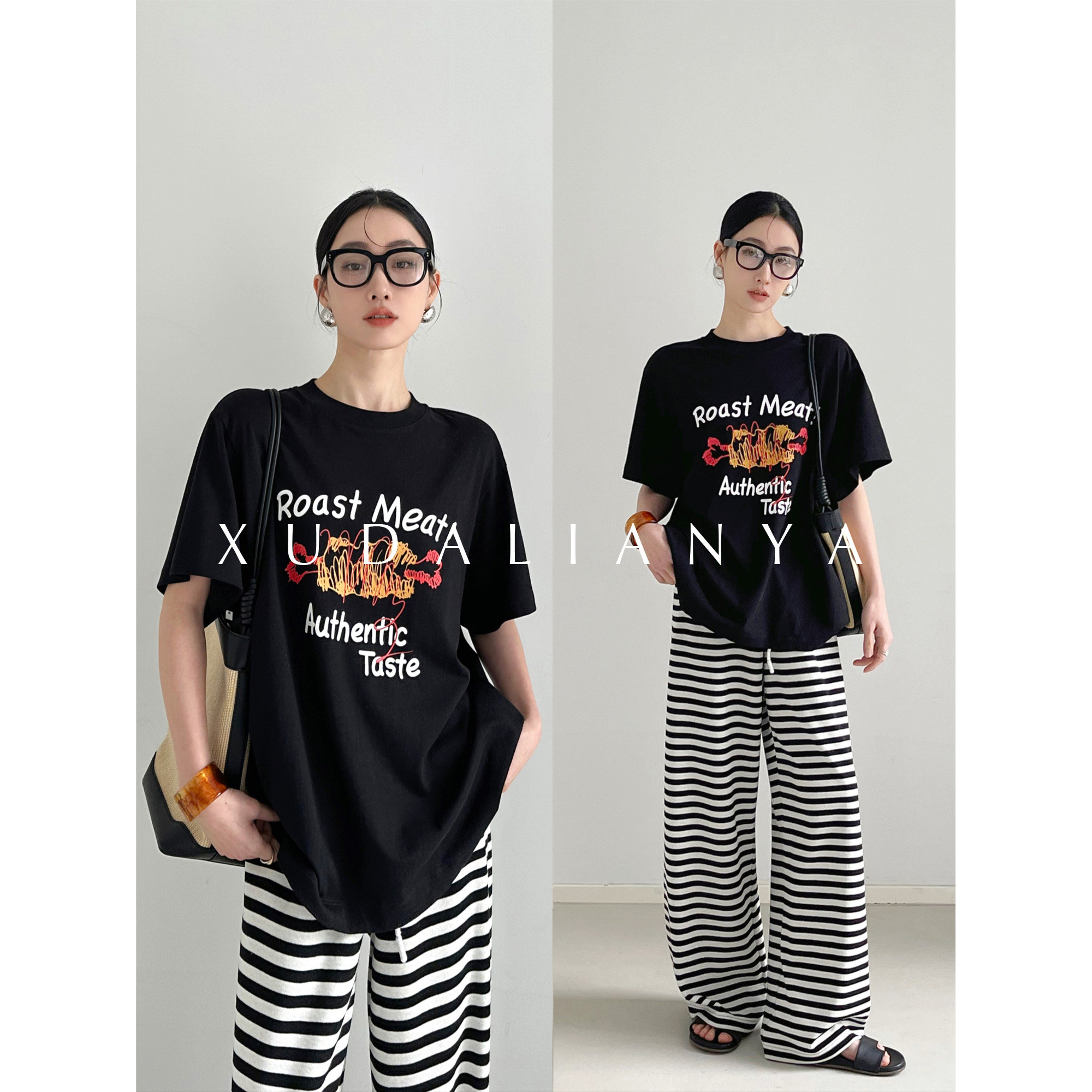 徐大脸吖定制 重磅透气纯棉春夏松弛感百搭休闲宽松印花短袖T恤女