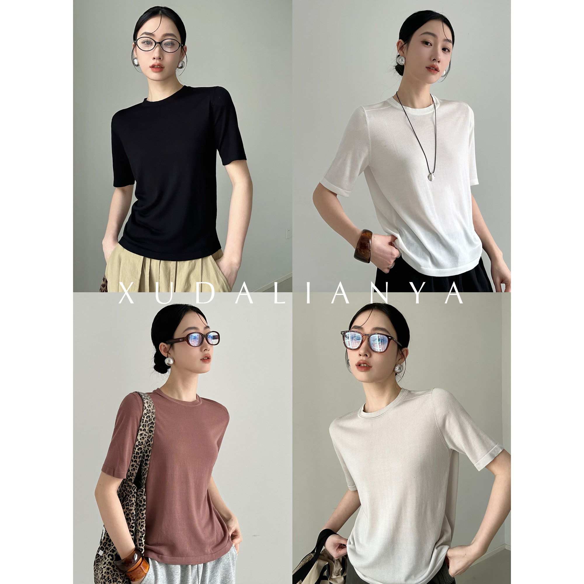 徐大脸吖定制 4色! 春夏基础款桑蚕丝&天丝针织正肩短袖T恤上衣女