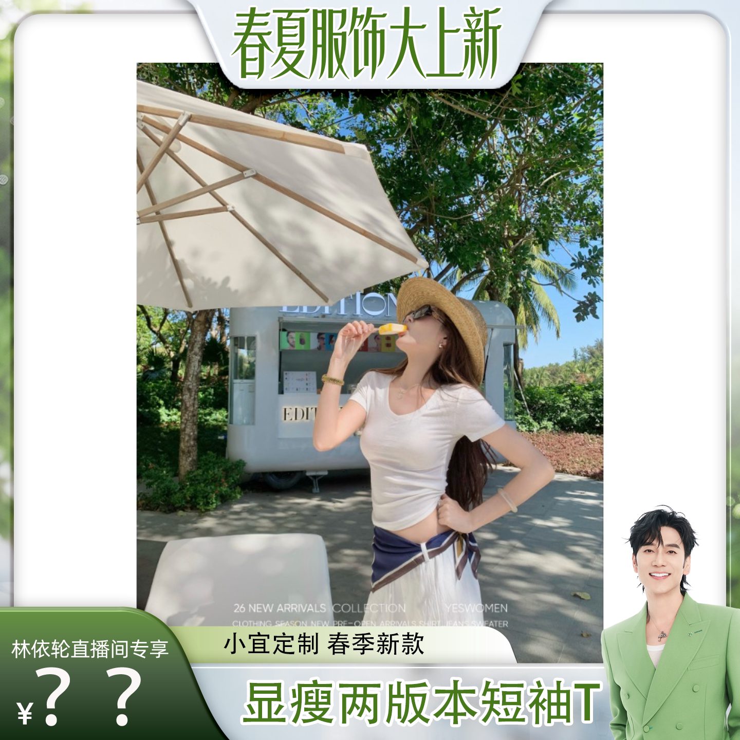 糯米子[凉皮T]绵绵冰超显瘦正肩收腰V领短袖女上衣打底小心机T恤