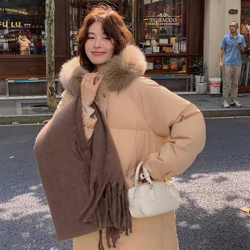 2024冬季新款韩版收腰狐狸大毛领羽绒服女宽松保暖小个子加厚外套