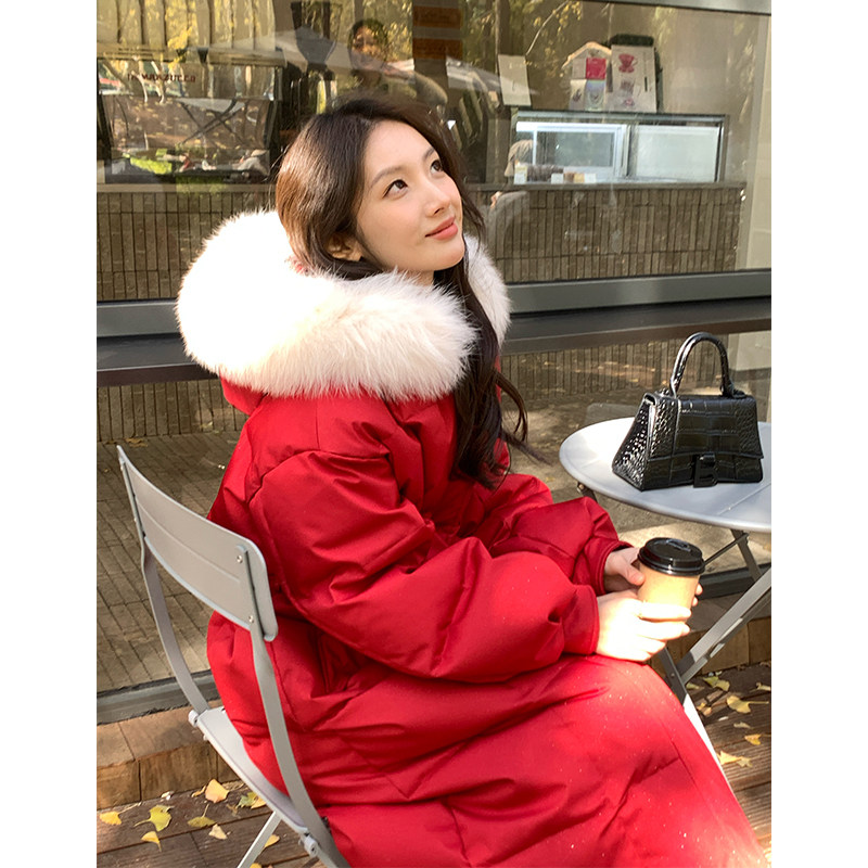 ZHUYIYI 新年红色长款狐狸大毛领羽绒服女2025冬季加厚白鹅绒外套