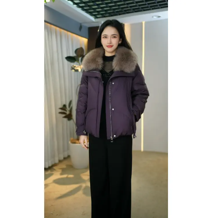 2025冬季新款狐狸大毛领羽绒服女短款90白鹅绒宽松加厚真皮草外套
