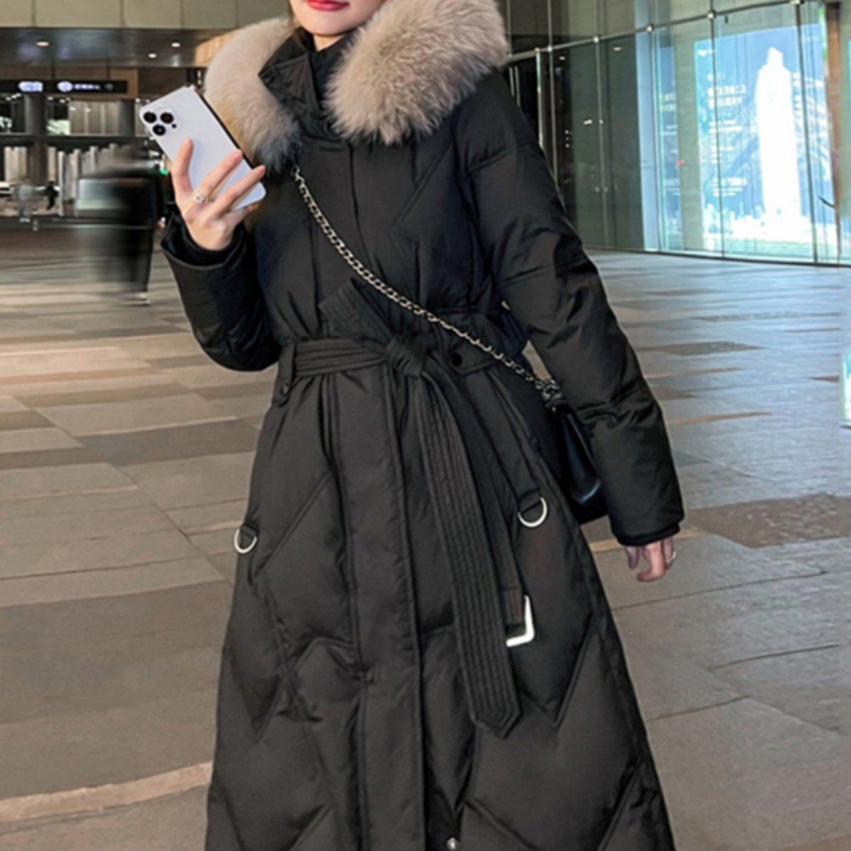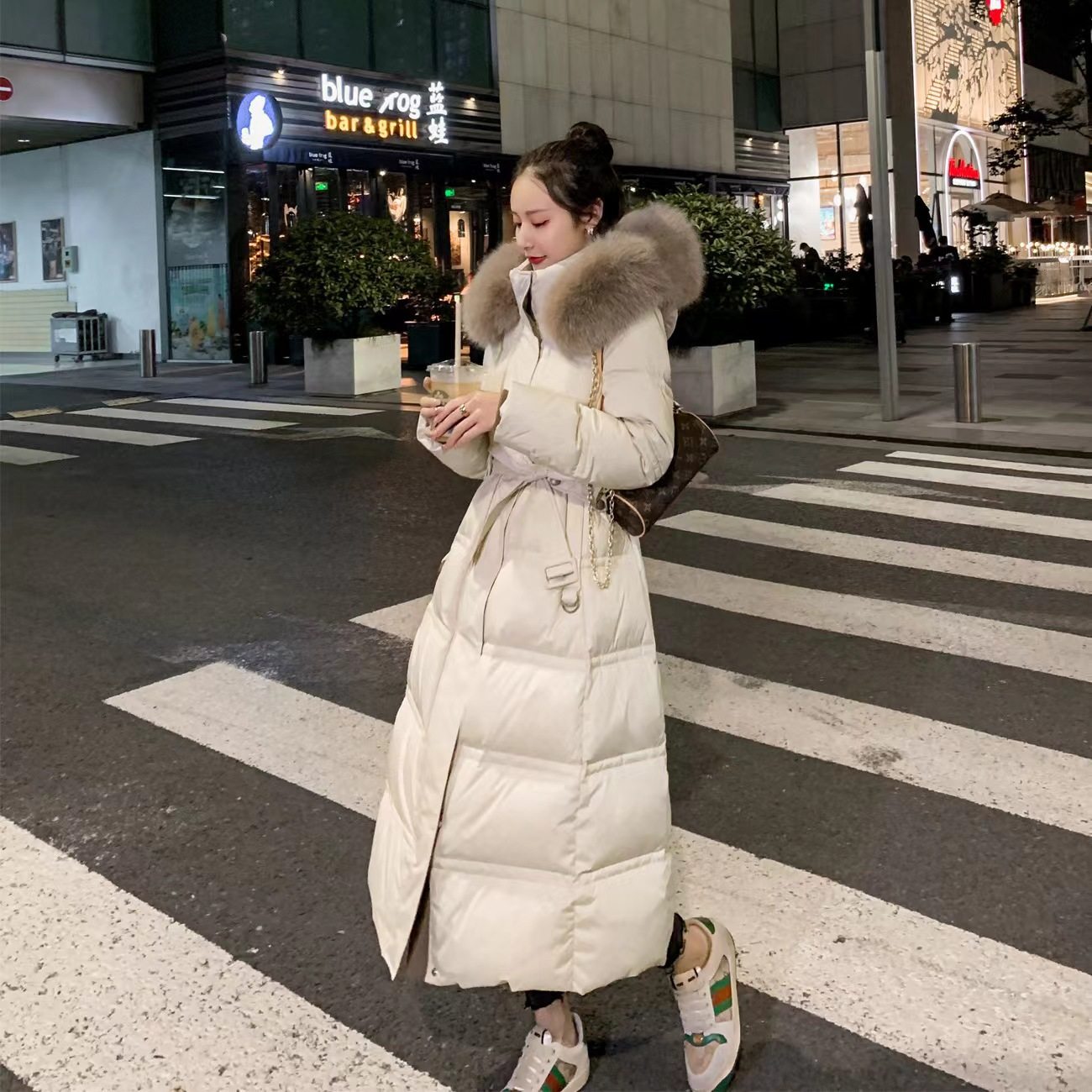 狐狸大毛领羽绒服女2025冬季新款时尚甜美保暖加厚过膝白鸭绒外套